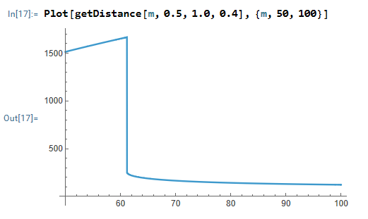このようになった原因を探るためにm=60の時のジャンプを描画してみます。