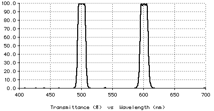Needle Optimization. This powerful optimization method makes the design of coatings almost automatic; just specify the optimization targets and the materials with which you want to manufacture the coating, and the method adds layers until it finds an optimal design. The needle method is especially useful for designs that have unusual requirements. For example, the dual-band bandpass filter shown below was designed automatically in about an hour (on a 66MHz 80486 DX2) — starting from a one-layer design!