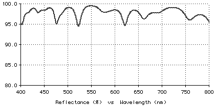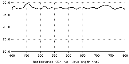 These values correspond to stacks centered at 729, 559, and 432 nm. The average P reflectance is about 98%. The performance for P polarization is displayed below.