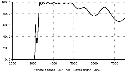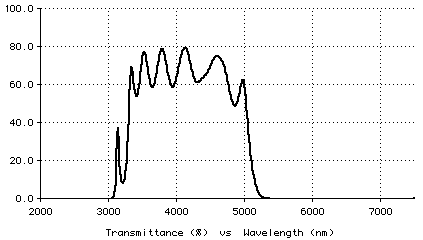Third, experience shows that it is best to place the short-wave pass filter closest to the substrate and then to append the long-wave pass filter. (The needle/tunneling method “discovers” this fact when the brute-force approach is used.) Before optimizing, the performance is: