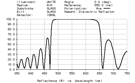 The graphic below shows the performance of a 19-layer H(LH)^9 dielectric reflector.