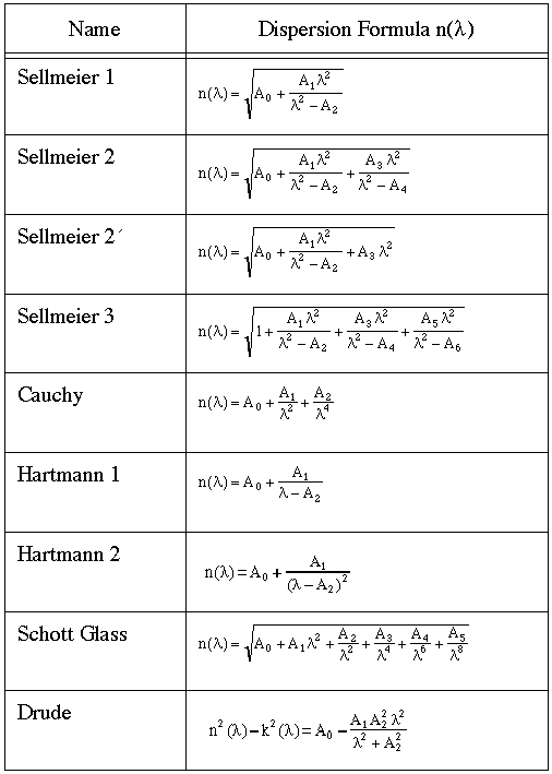 - fitting a dispersion formula. In this case, the index is assumed to follow a formula containing a few parameters. It is assumed that measurements are of a single layer coated on a substrate. Up to three files of measurements (R and/or T) can be used. TFCalc solves a nonlinear least-squares problem to determine the parameters in the dispersion formula. The user can (1) select which parameters should be optimized and (2) constrain the values of the parameters. Here are the dispersion formulas that are available for N: