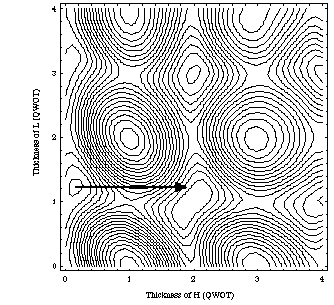 A benefit of the needle/tunneling method is that the initial design can be very simple — perhaps only 1 QWOT thick. The method will grow the design to meet the desired performance.