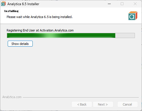 Run をクリックすると、Windows Installer が自動的に起動し、Analytica のインストールがはじまります。