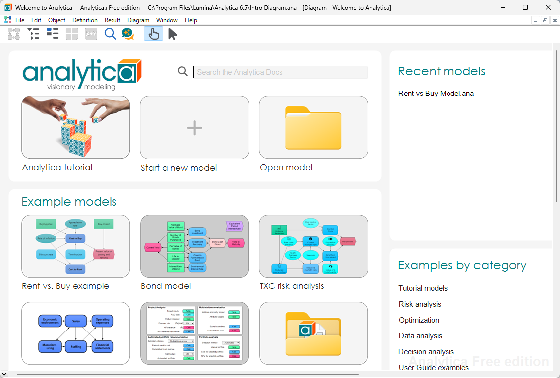 プログラムが起動します。Example models のいずれかをクリックすると、サンプルデータが開きます。
