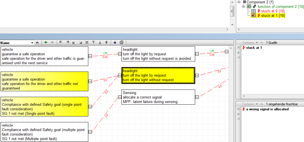グラフエディタの広範囲にわたる機能の詳細について、全てを知ることはできませんし、知りたいと思わないかもしれません。しかし、例えば、機能安全で要求される故障率を表示するなど、グラフ内の2つのノードの端点、すなわち故障間をつなぐ先に関連する情報が表示されるようになったことは説明しておくべきでしょう。