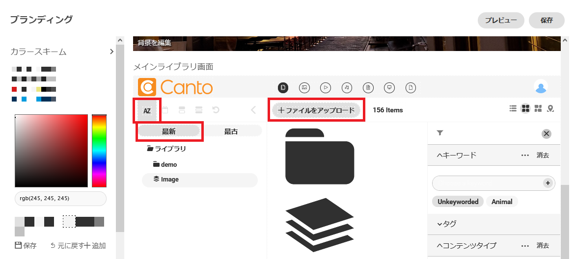 ユーザーメニュー > アカウント > ブランディング