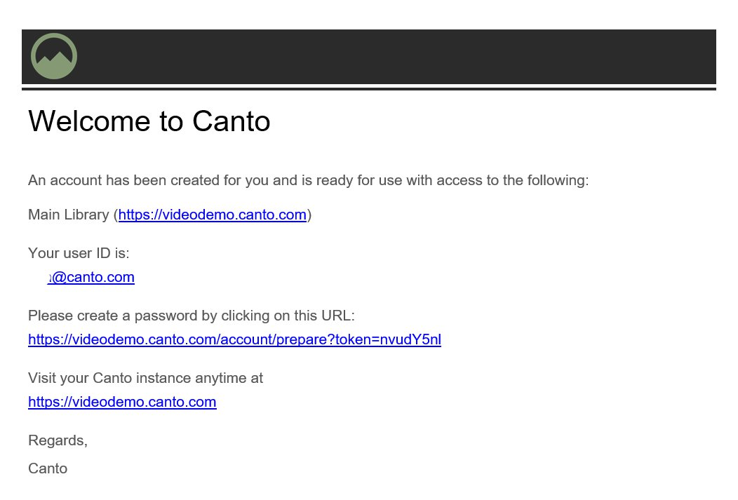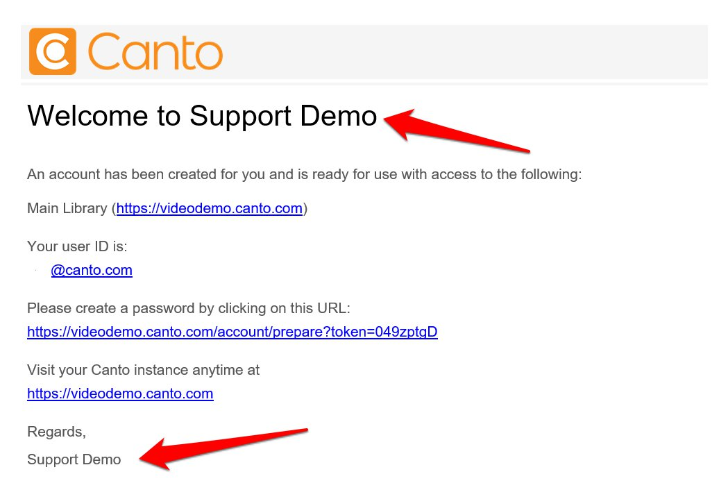Canto インスタンスのブランディングを更新することで、ウェルカムメールをカスタマイズできます。ブランディングは、ウェルカムメールのロゴとカラーフォーマットを管理します。