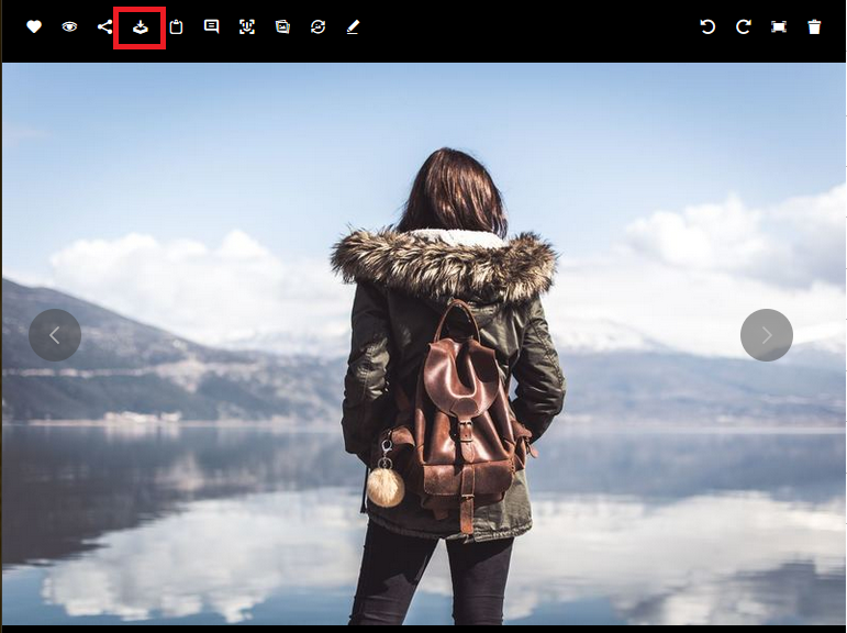一括でダウンロードしたい場合は、サムネイルやツールバーに「ダウンロード」アイコンがあります。