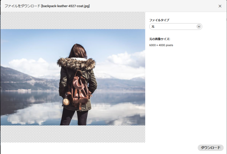 ダウンロードアイコンをクリックすると、画像のプレビューとともに、詳細なオプションが表示されます。画像ダウンロードの詳細オプションは: