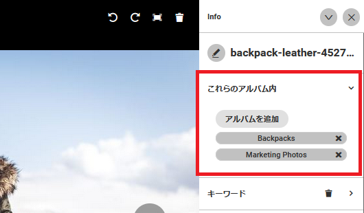 選択したすべてのアルバムにファイルが追加されます。アルバムは「これらのアルバム内」の下に表示されます。