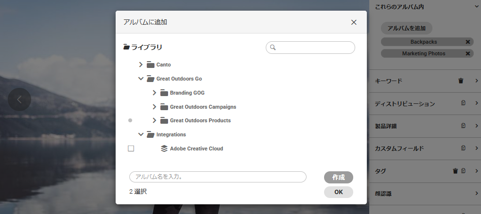 アセットをアルバムに追加したり、割り当てたりする方法はいくつかあります。複数のアルバムにアセットを追加することも可能です。