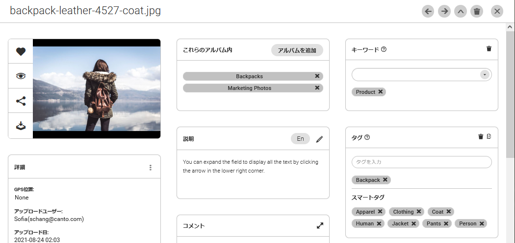 選択したすべてのアルバムにファイルが追加されます。アルバムは「これらのアルバム内」の下に表示されます。