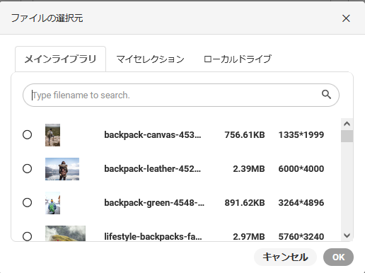 また、ローカルストレージからファイルを選択することもできます。その場合は、「フォルダーにサムネイルを追加する方法」(上記参照)の手順に従ってください。