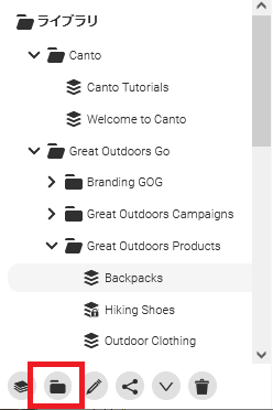 注記:フォルダーやアルバムの説明文は、フォルダーやアルバムのツリーの下にあるキャレットをクリックすることで表示できます。説明文は、スタイルガイドのサムネイルの下にも表示され、検索機能で探すことができます。