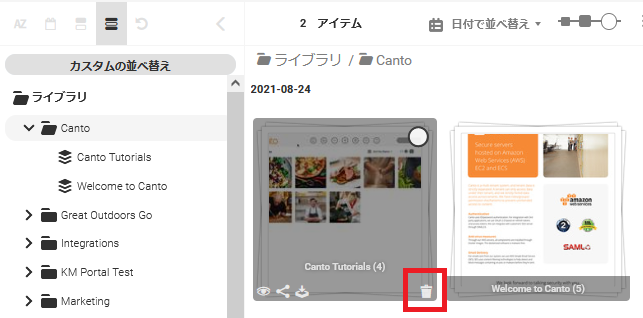 管理者であれば、ゴミ箱に入って復元することができます。フォルダーやアルバムは、フォルダー構造内で最初に配置されていた場所に復元されます。アルバムやフォルダーが復元されると、以前そこにあったアセットは再びアルバムに移動します。