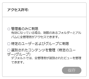フォルダーやアルバムにアクセスできるユーザーやグループを指定し、表示を制限することができます。