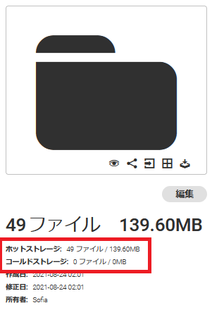 フォルダーやアルバムのアイコンの下には、含まれるファイル数や必要な保存領域の大きさなどの情報が表示されます。