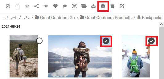 - ここで、「×」をクリックすることで、各アルバムからアセットを削除することができます。