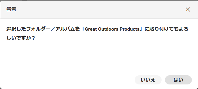 - コピーしたフォルダーやアルバムを貼り付けるには、Cmd + V(Mac OS)またはCtrl + V(Windows) で選択する必要があります。