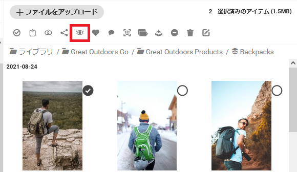 全神経を集中させたいアセット、フォルダー、アルバムには、フォロー機能を使います。