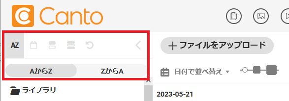 アルファベット順、日付順、タイプ順でソートする場合、さらにソートの方向を変更することができます: