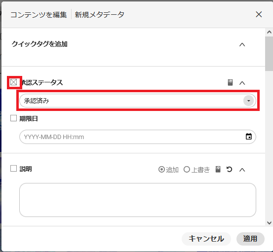 - 「承認済み」を選択し、該当する場合は有効期限を設定します。