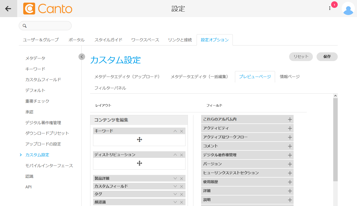 注記:プレビューの画質は固定で、Canto で調整することはできません。