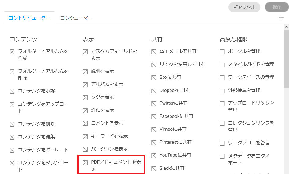 PDF/ドキュメントの閲覧権限をユーザーレベルごとに設定することができます。