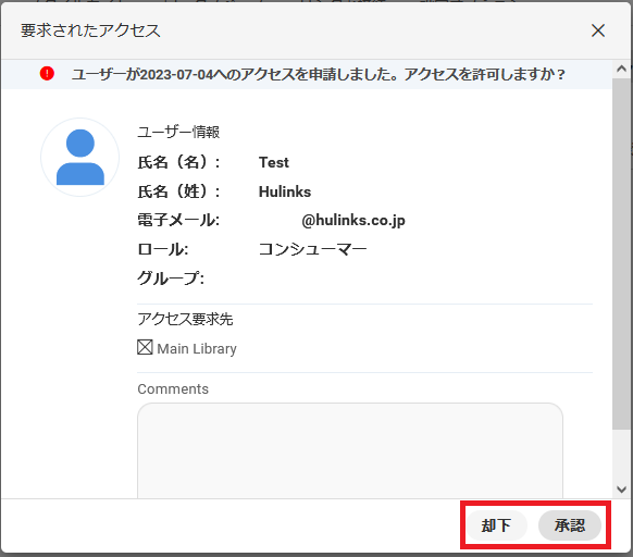 - リクエスト送信者から提供された情報が表示され、リクエストを承認するか拒否するかを選択できます。