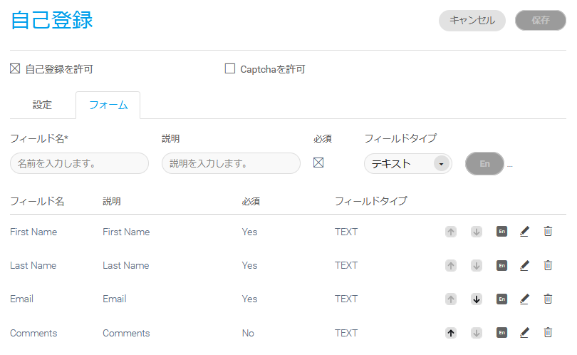 - 「FirstName」、「LastName」、「Email」、「Comments」の4つのフィールドは削除できません。