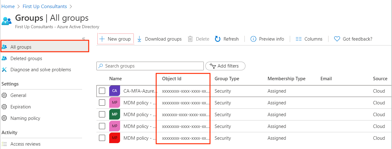 Canto ではこの ID は Azure Group ID と呼ばれ、Azure では Object ID と名付けられます。