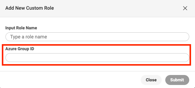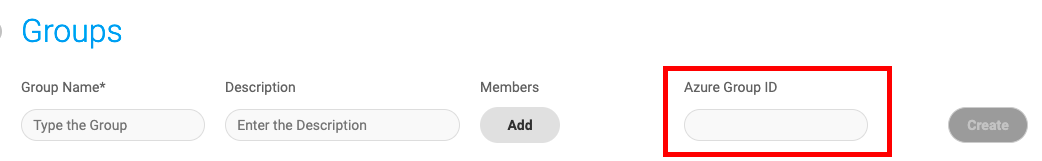 SSO が有効なアカウントで、管理者としてログインしているか、ユーザーとグループを管理する権限を持っている場合、Azure Group ID を使用してグループを追加することができます。