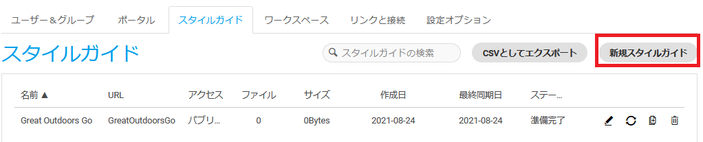 条件:新しいスタイルガイドを作成するためには、管理者アカウントでサインインする必要があります。
