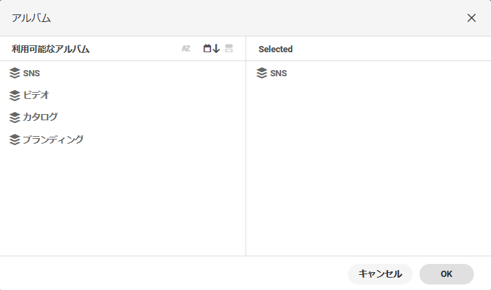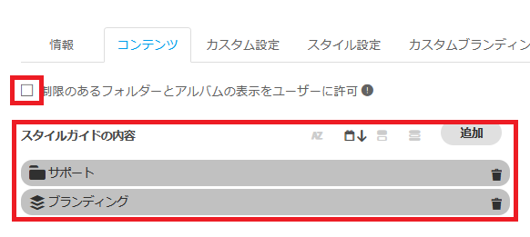 - 「コンテンツ」タブで、スタイルガイドに追加するメインライブラリのフォルダーとアルバムを指定します。