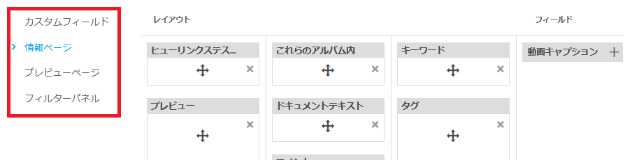 ここでは、メインライブラリのカスタムフィールドとカスタム設定に関する情報が表示されます(レイアウトを設定する際にも同じ原則が適用されます)。
