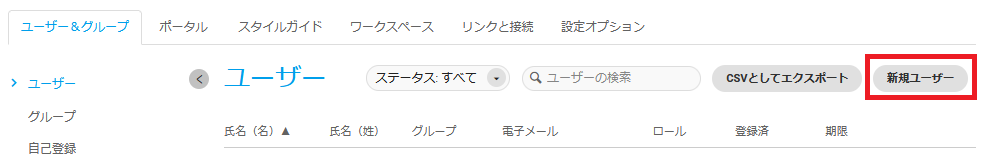 ユーザーメニュー > 設定 > ユーザー&グループ > ユーザー