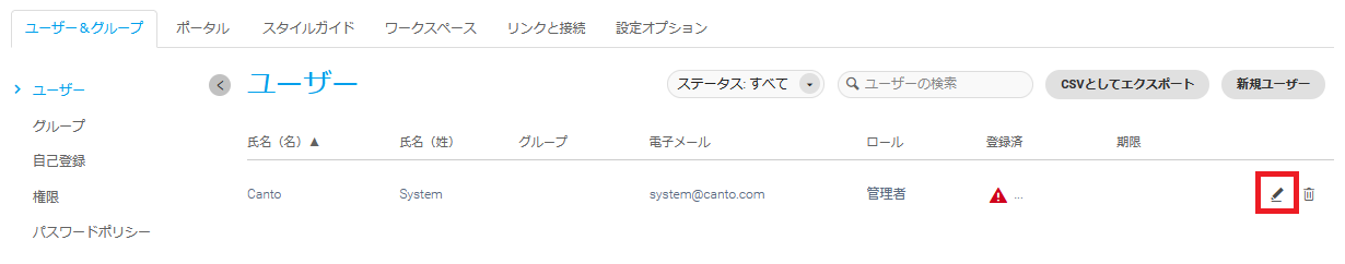 ユーザーメニュー > 設定 > ユーザー&グループ > ユーザー