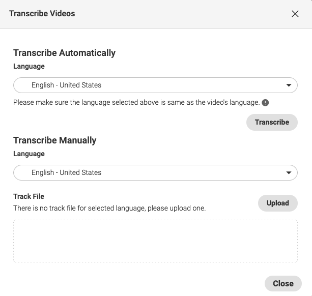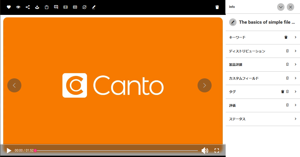 Canto では、動画に字幕やキャプションを手動でアップロードすると、Canto がそのファイルを動画に埋め込むことができるようになりました。