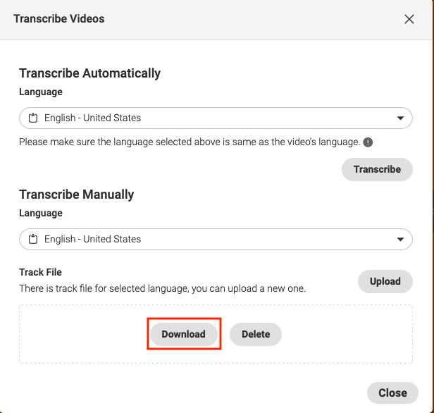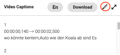 また、「ダウンロード」をクリックすると、書き起こした映像に変更を加えることができます。これで、編集可能な SRT ファイルがダウンロードできたことになります。ファイルの編集には、任意のテキストエディターを使用できます(例:メモ帳または TextEdit)。書き起こしにはタイムスタンプが付きます。