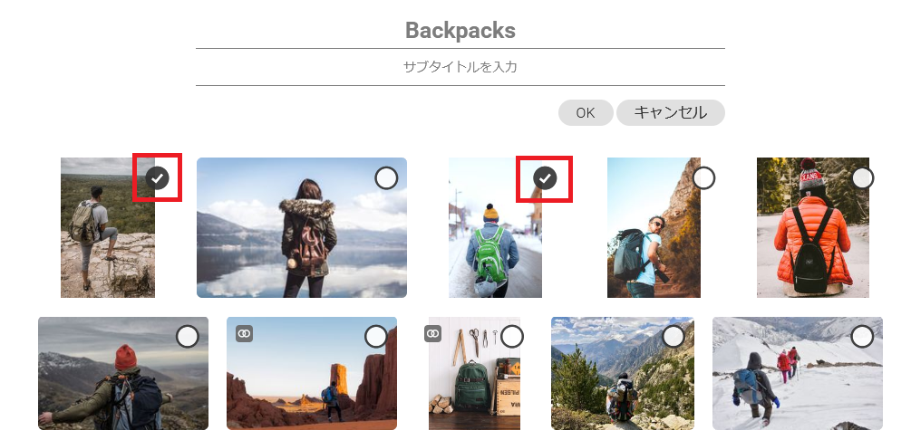 キュレーション表示では、アセットを好きなように並べたり、セクションにまとめたりすることができます。各セクションにタイトルと説明をつけることができます。