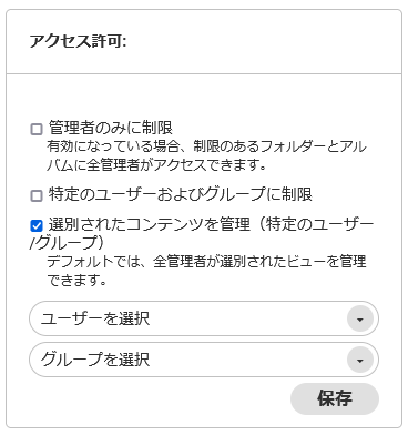 アルバムの詳細表示で、特定のユーザーやグループにキュレーションコンテンツの管理を許可する設定を確認できるようになりました。