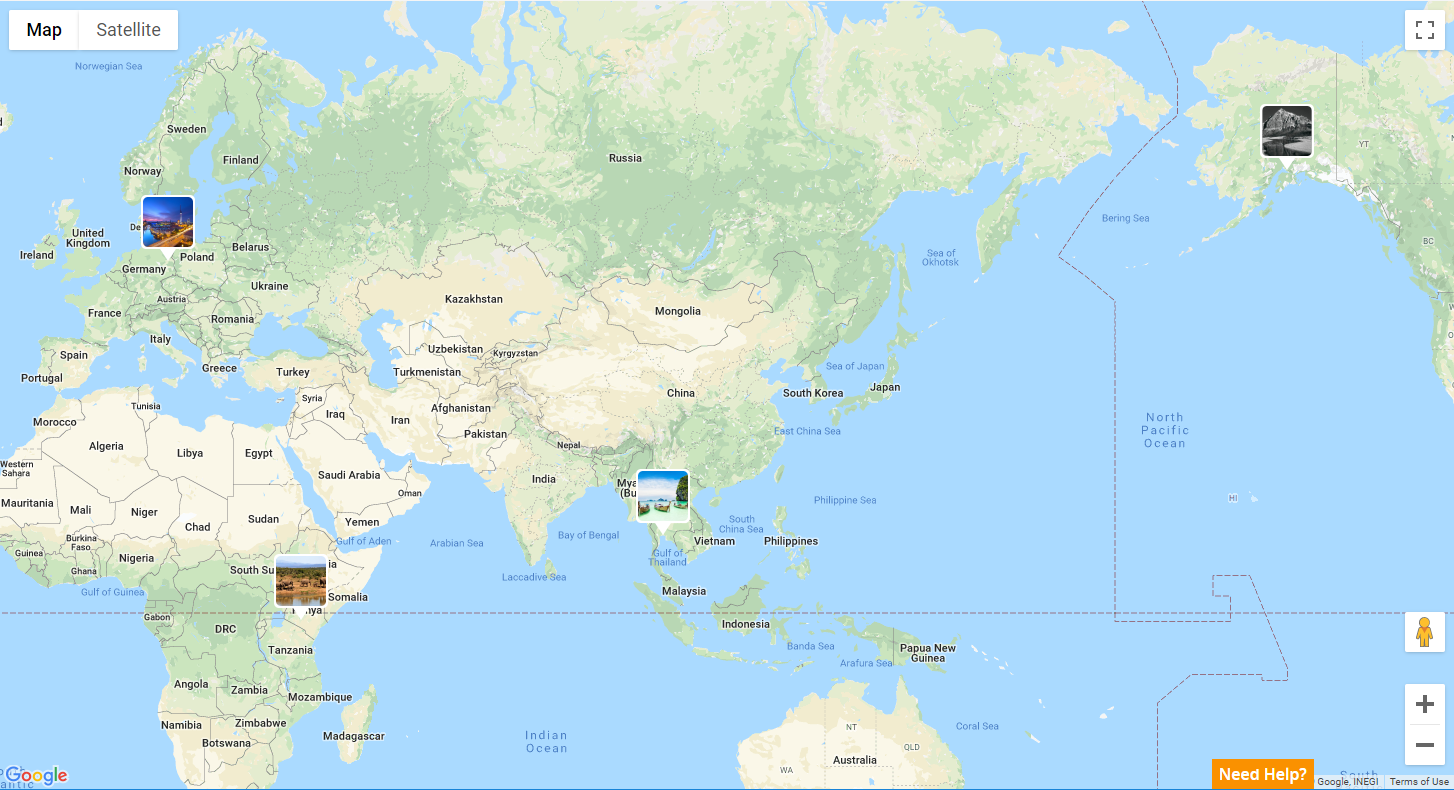 ジオビューは、メタデータ内に GPS 座標を持つ写真や動画を、世界地図上の対応する場所にピン留めすることができるビューです。