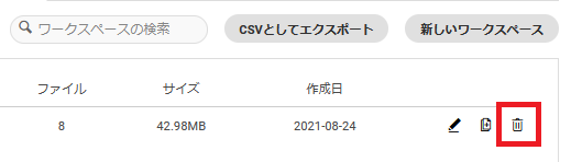 - 削除するワークスペースの横にあるゴミ箱アイコンをクリックします。