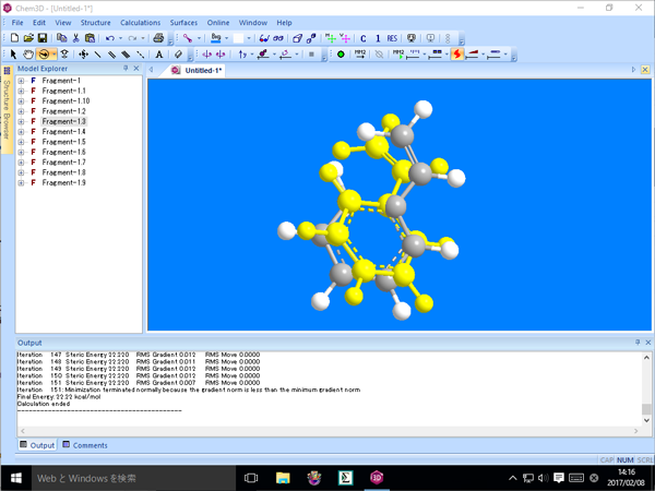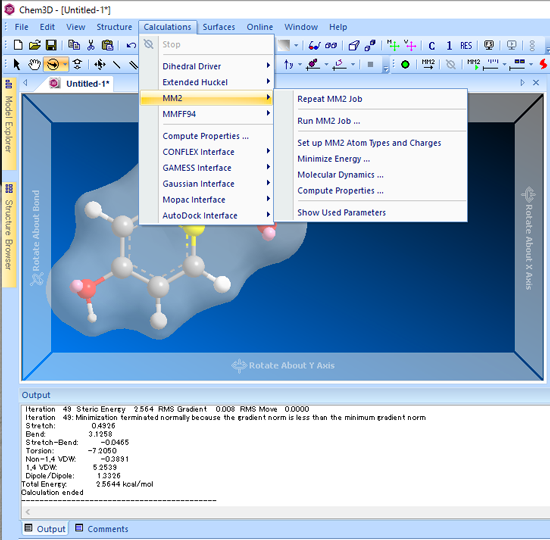 Chem3D では MM2 をサポートしており、構造の最適化を行うことができます。
