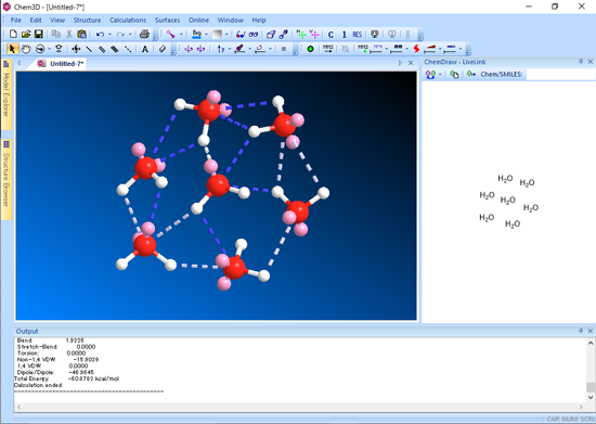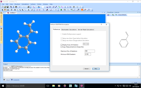 Chem3D では、初期状態における構造や原子の座標、結合から分子の妥当な立体構造を決定することができます。