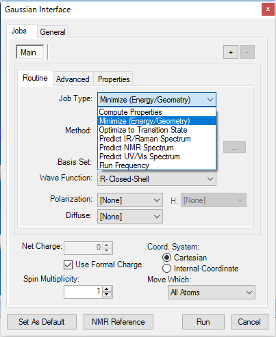 Gaussian インターフェースでは、以下のような Gaussian におけるすべての計算がサポートされています。