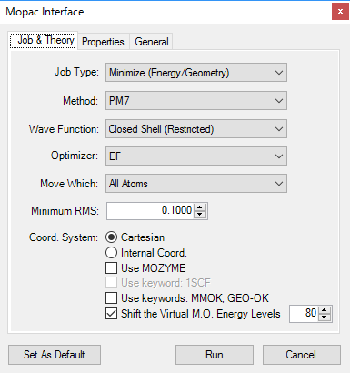 ※ MOPAC は別途インストールする必要があります。Chem3D には含まれていません。