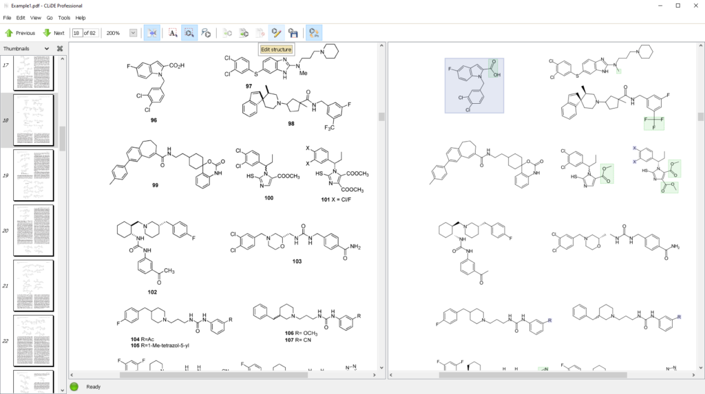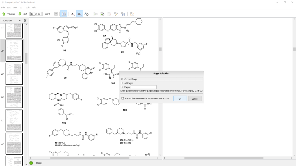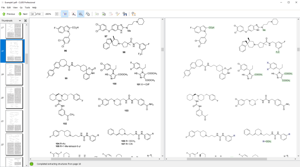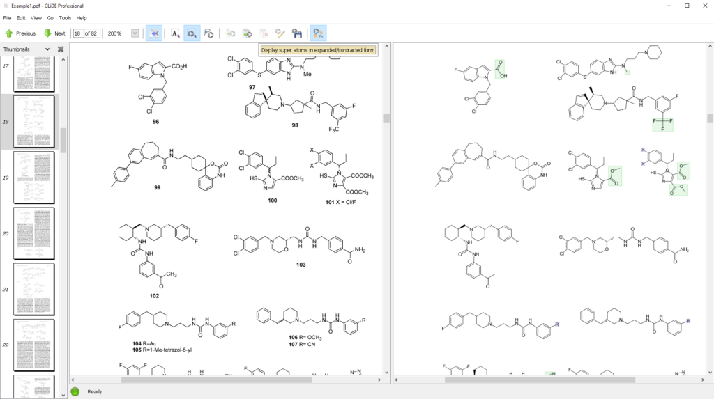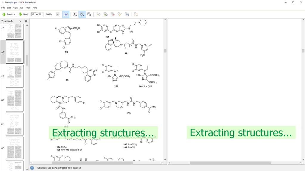 - 複数セッションの文書解析が可能。抽出作業の結果を XML ファイル形式に保存し、後で再読み込みして、分子のレビューとエクスポートを開始することが可能