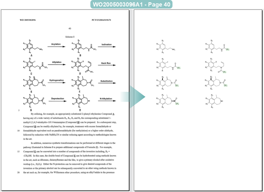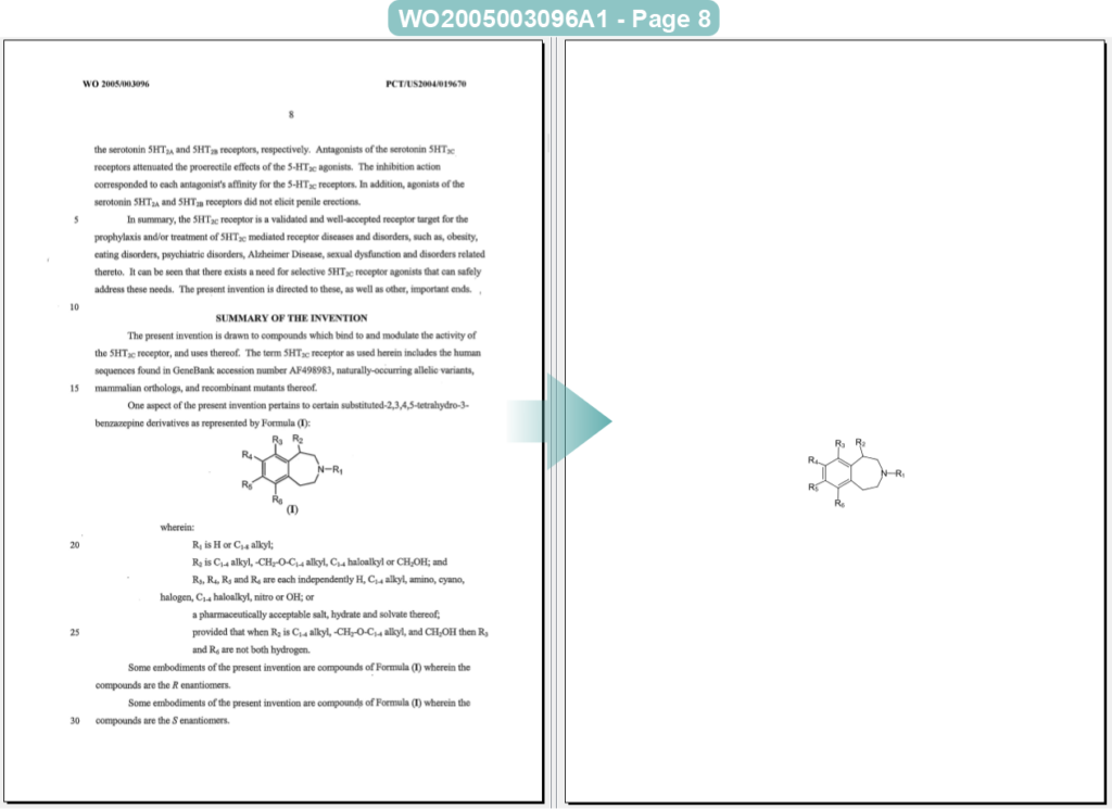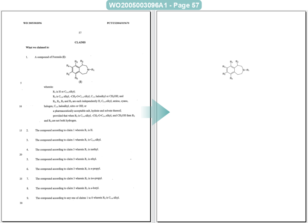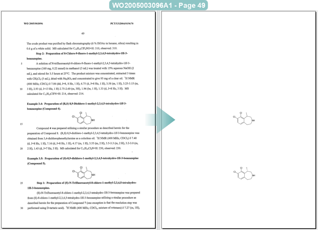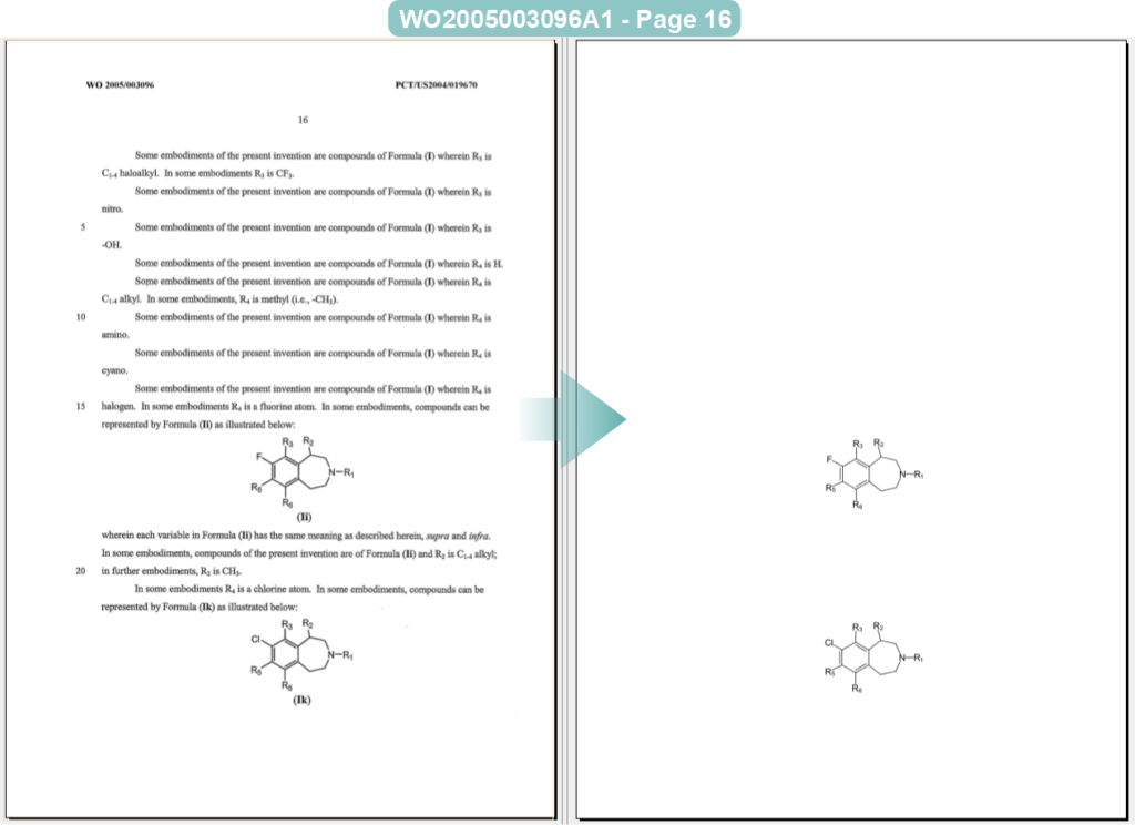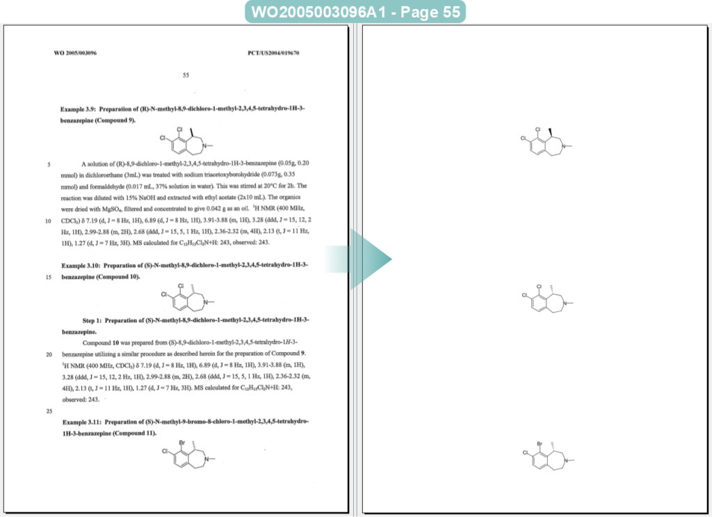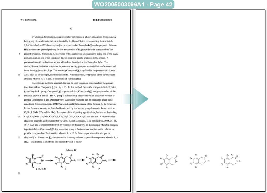 CLiDE Batch は高スループットに最適です。以下は CLiDE Batch で処理した 71 ページの WIPO (世界知的所有権機関) の特許データページの抜粋です。CLiDE Batch から抽出結果を出力した XML を CLiDE Professional で開いて生成しています。